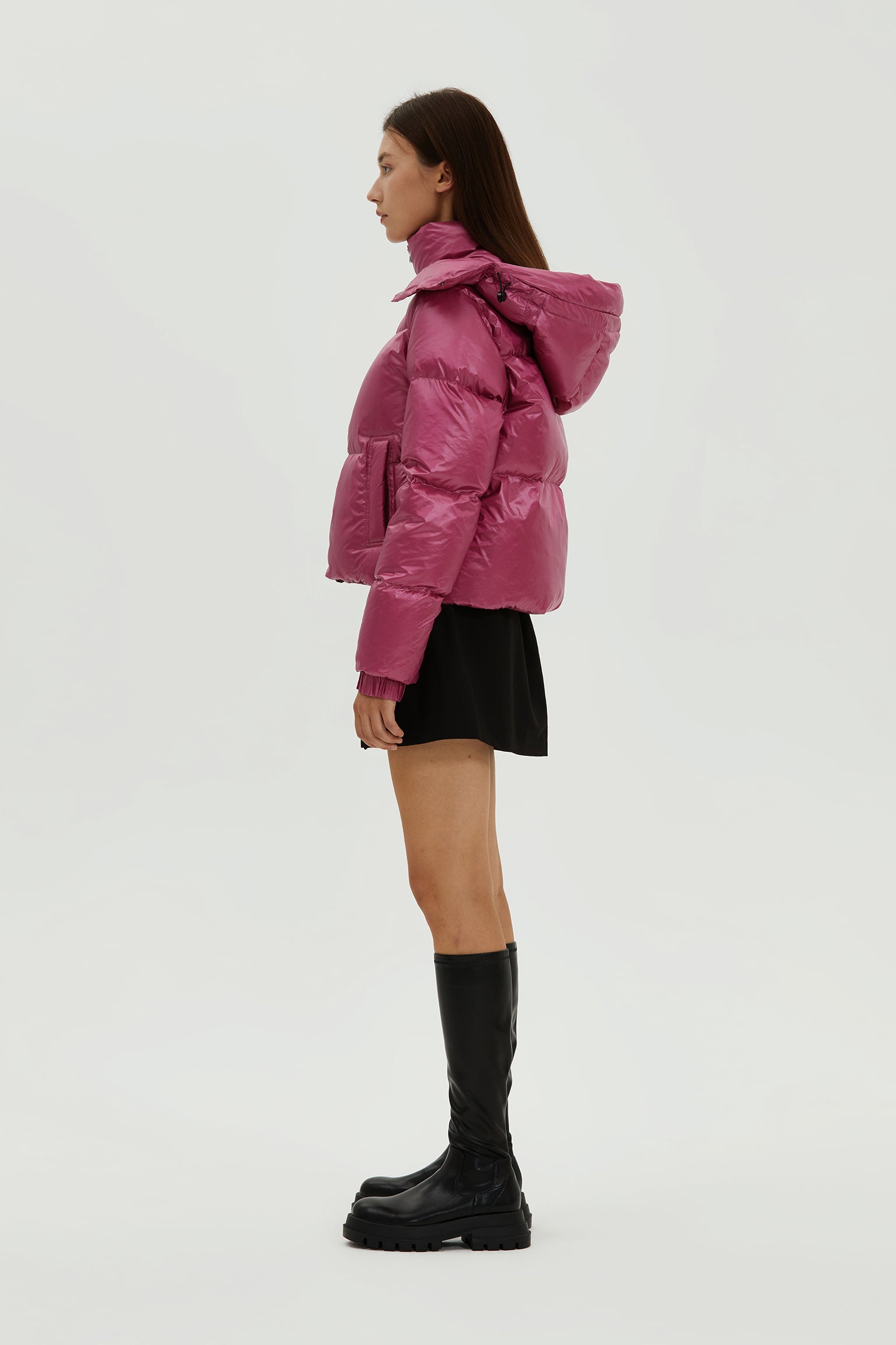 Made of ultra light water repellent shiny nylon with soft and wide horizontal quilting, it is characterized microfleece-lined pockets and cuffs for keeping your extremities toasty. An internal zippered pocket holds your small accessories while the interior drop pocket offers more expensive storage should you need to stash larger items.